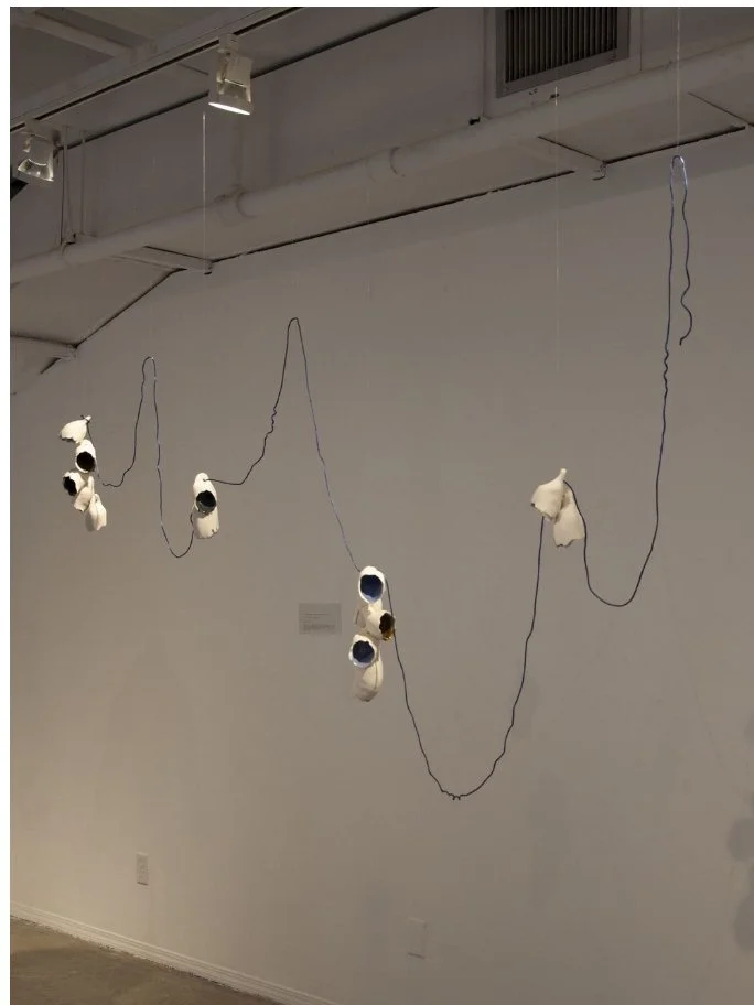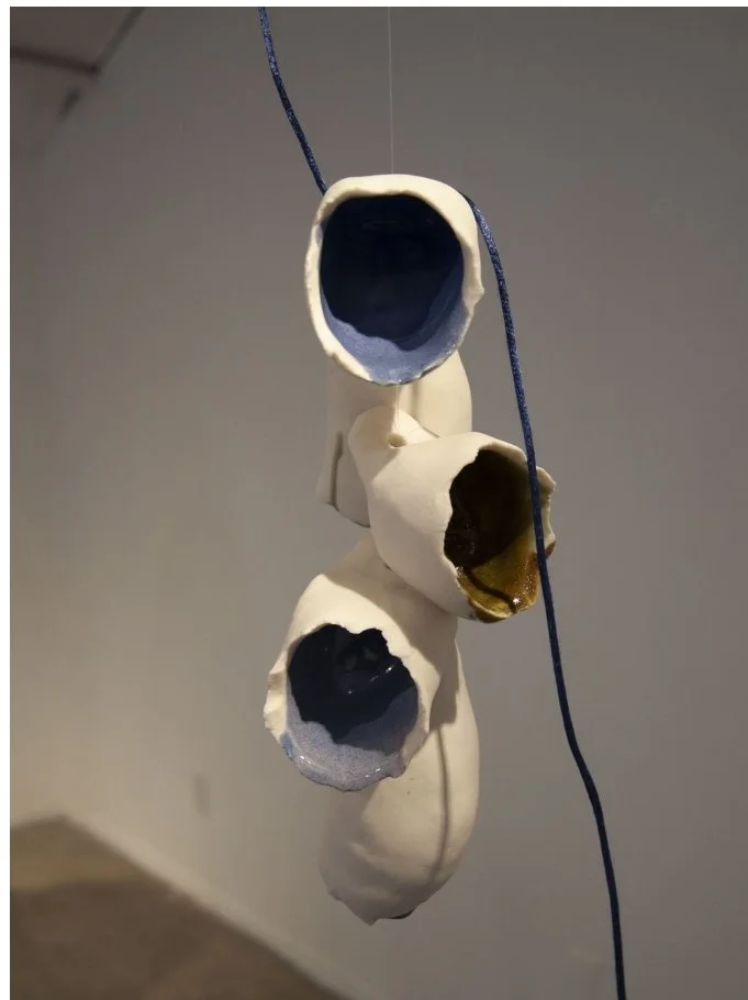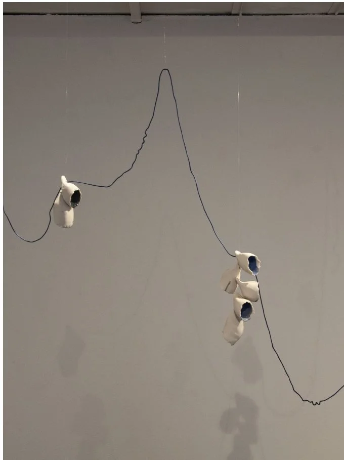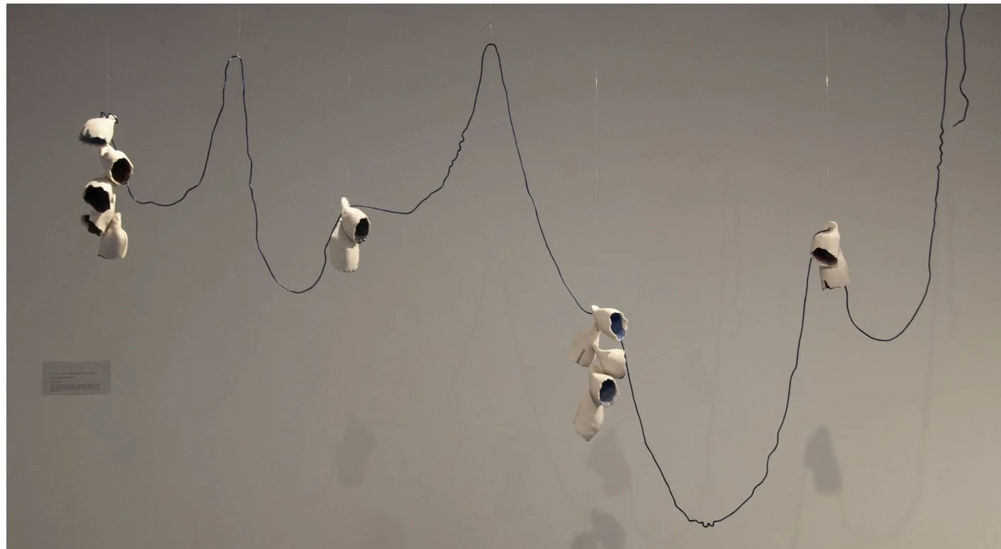 Discrete forms, delicate, ephemeral, precious and similar in size and shape, each with a hidden interior. They are connected with a thread and grouped into repeating clusters of five and two. Five plus two equals seven, seven plus seven equals two. The forms can be counted and are finite.