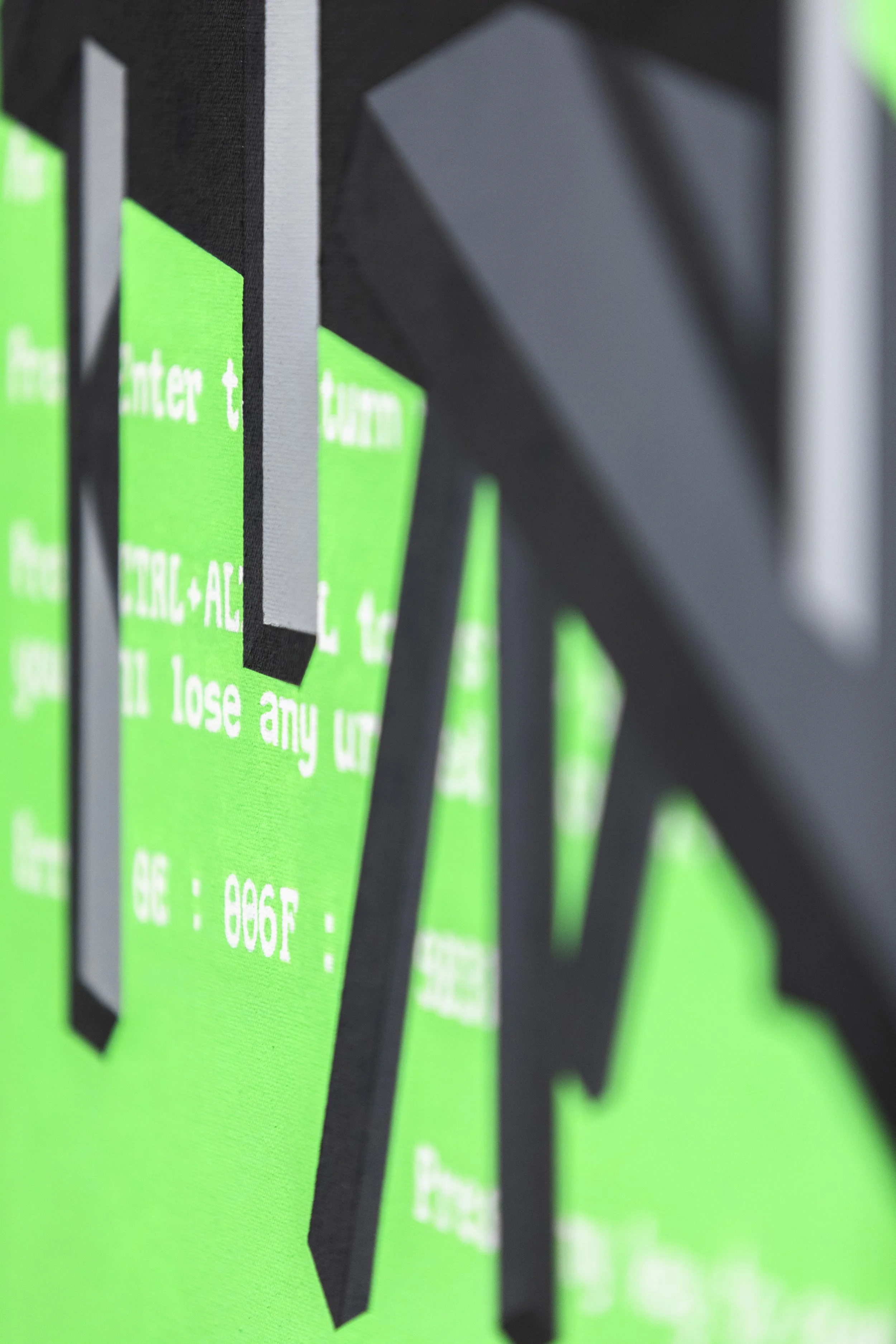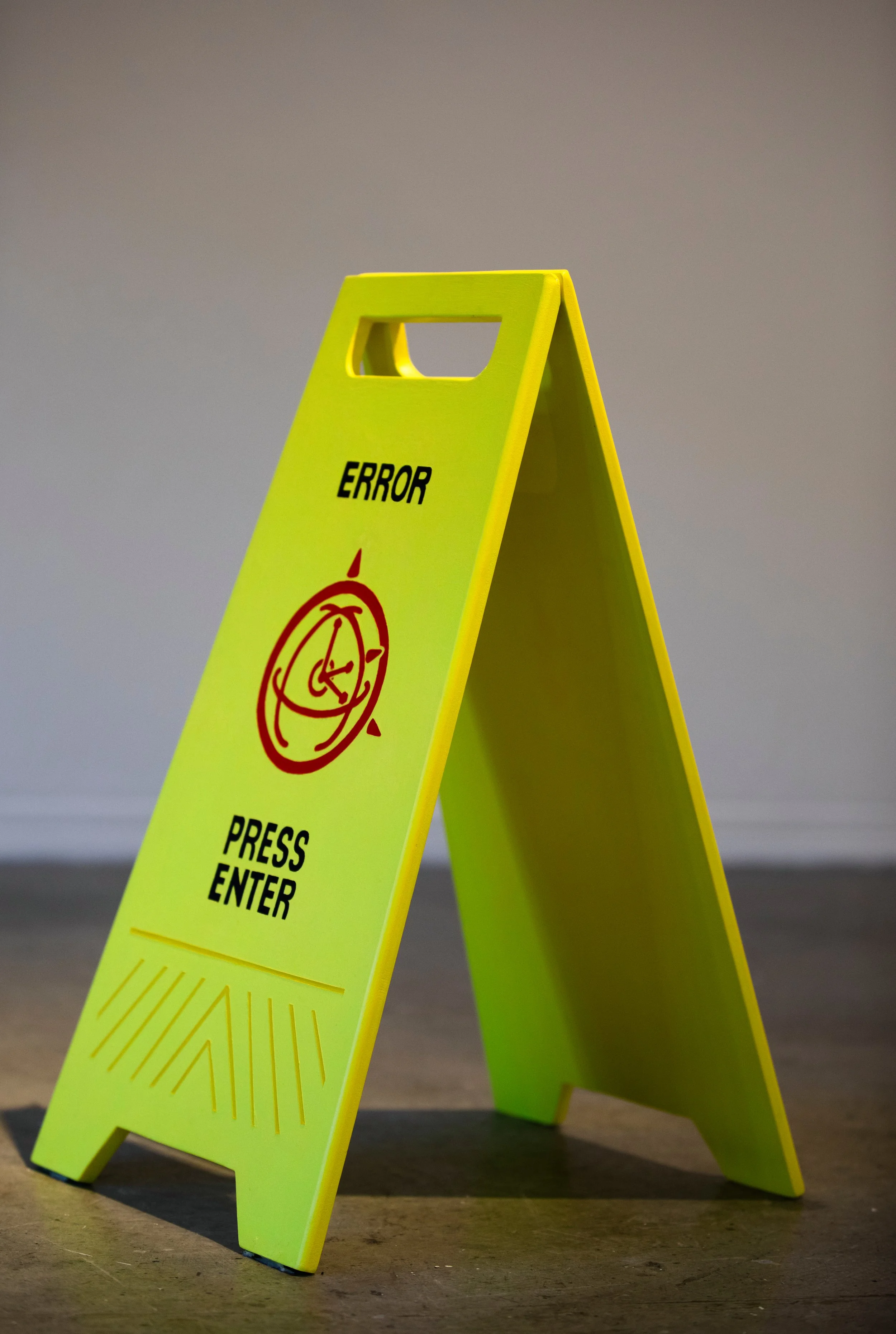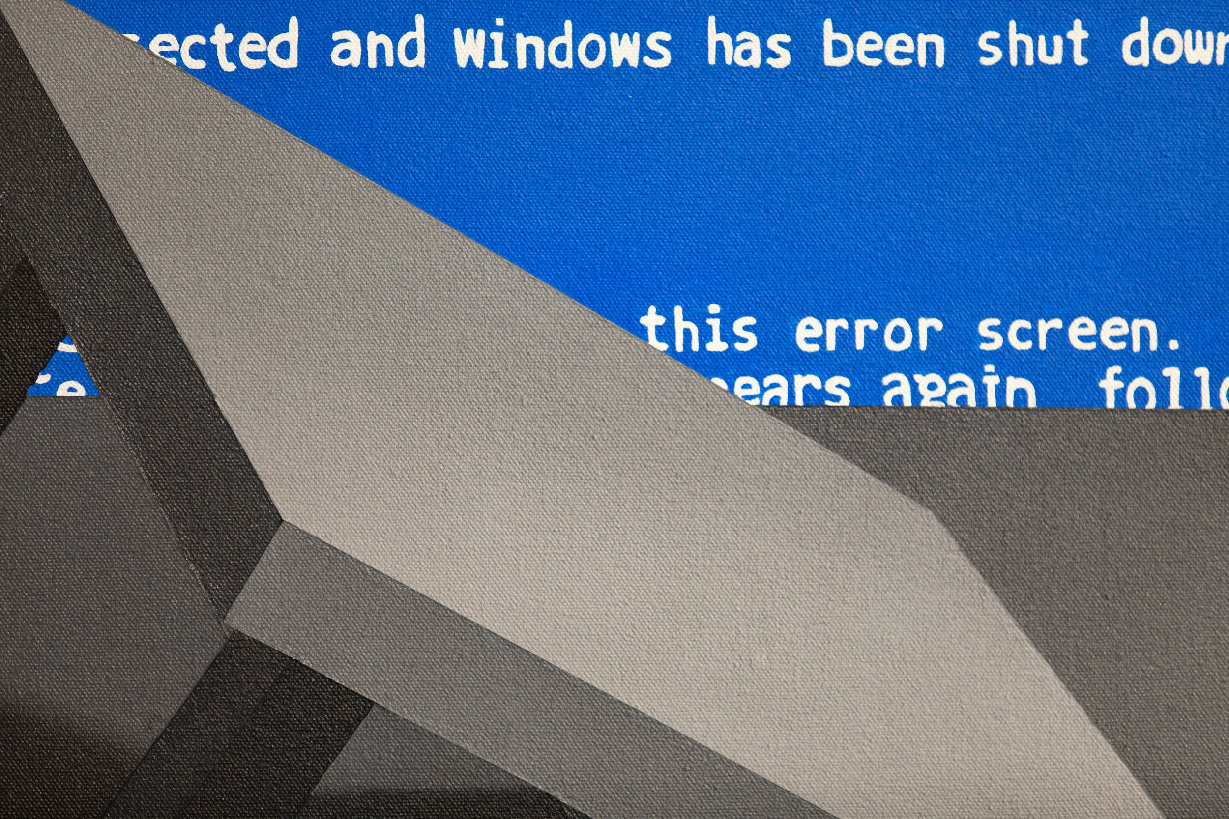 Interfaces dictate the conditions of your interaction with a more complex system. It acts as a mediator between the users and the machine. When these displays fail, there is no longer any meaningful interaction that can take place. The power of the user is lost. The user can only act within the parameters set out by the designer, and other potential uses beyond the intended functionality are discouraged. These digital interfaces are similar to institutional and industrial spaces. Symbols, signage, and text act as barriers and guides in these complex systems, dictating what is a space to linger in and where to move through. We become very passive participants in our environments. You are not bound by code here, but the ways to conduct yourself are conditional. With tech favouring simplicity, restriction, and profitability over experience, and with institutional spaces being designed with conformity in mind, a literacy of one's environment is needed to regain the user's power in these spaces. Interacting with spaces in a truly transformative manner disrupts the conditions in which they were designed. Maybe a chance for something new is hidden in broken code, error screens, behind ceiling tiles, in the flicker of an exit, and under coats of paint.
