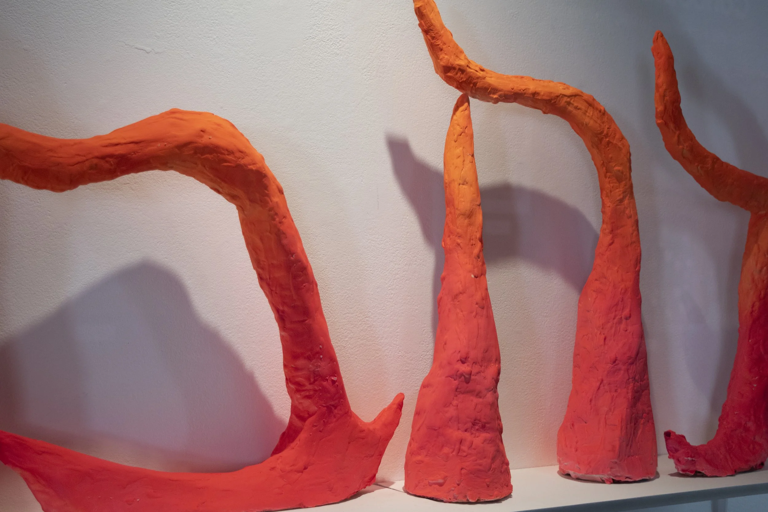 Love, Laugh, L’CHAIM! is an exercise in pulling text upwards from a two dimensional plane into three dimensional forms. Constructed through a paper mache process, the material which composes the word is the substrate on which words are traditionally written. The effort required to construct words into physical space mirrors the effort required for us to speak about things when they are distant from us. I use this process as an allegory for my Jewish identity, which is not totally lost, but distanced from me, historically stripped from my family by force, and requires me to reach outwards to understand my own culture, my own identity, my own past. Because work which discusses identity often necessitates a heaviness of tone, I instead investigate these themes through kitsch and humour: how does laughter factor into survivorship?