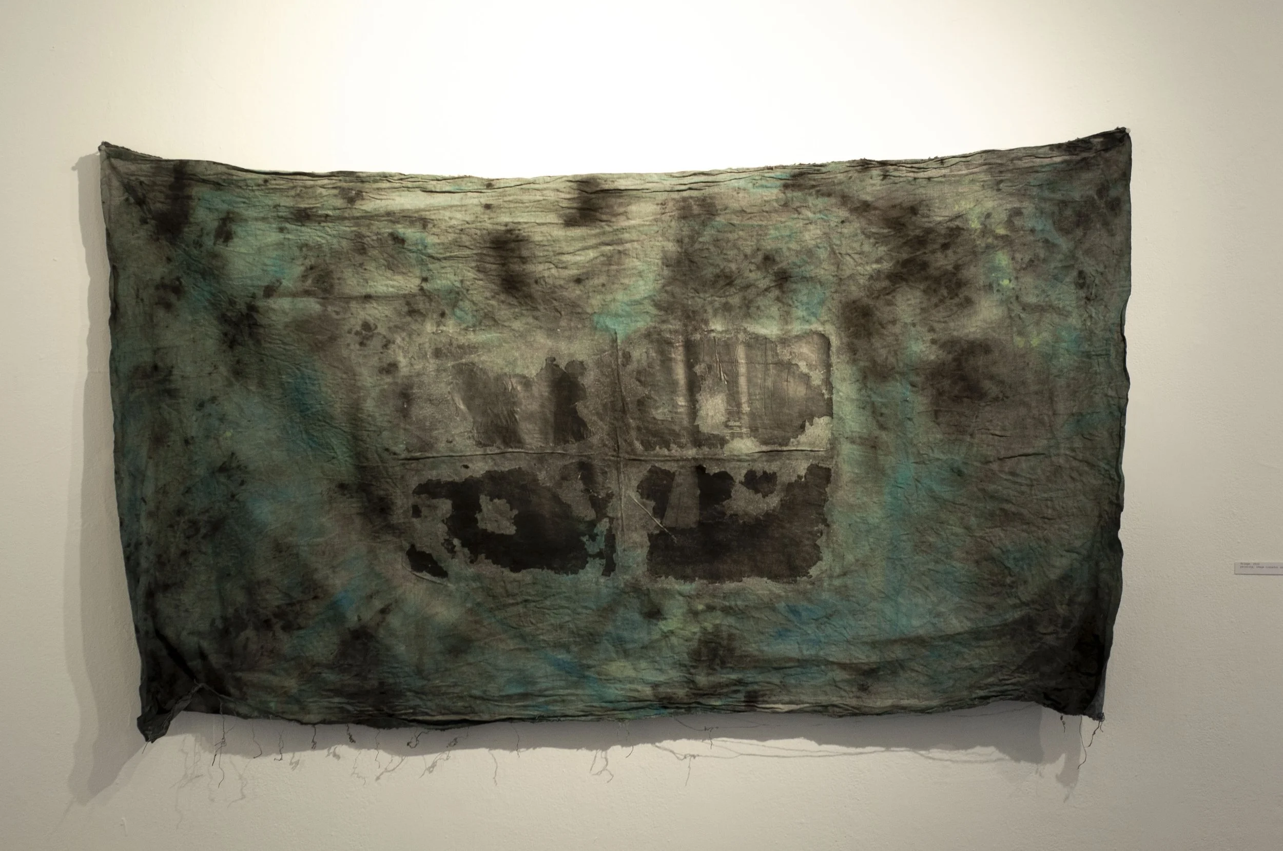 Bog Body, 2021 painting, image transfer, charcoal, on unstretched canvas (detail)