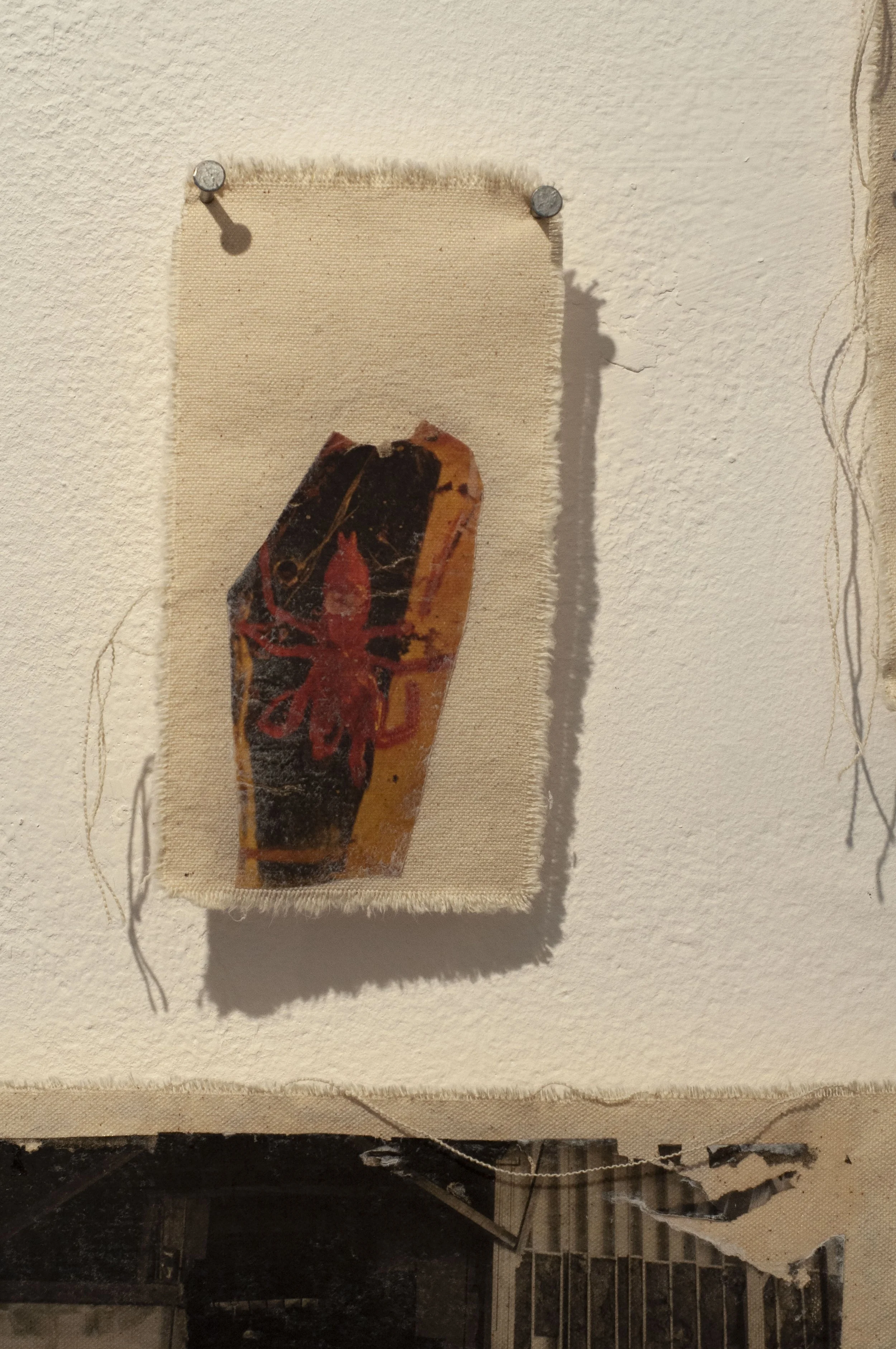 Blister, 2022 painting, image transfer, pastel, on unstretched canvas